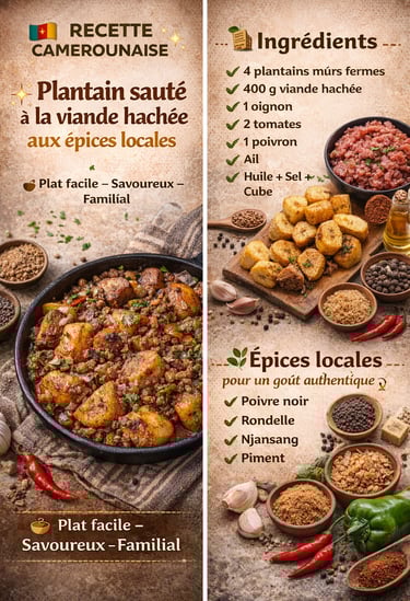 🇨🇲 Plantain sauté à la viande hachée aux épices locales